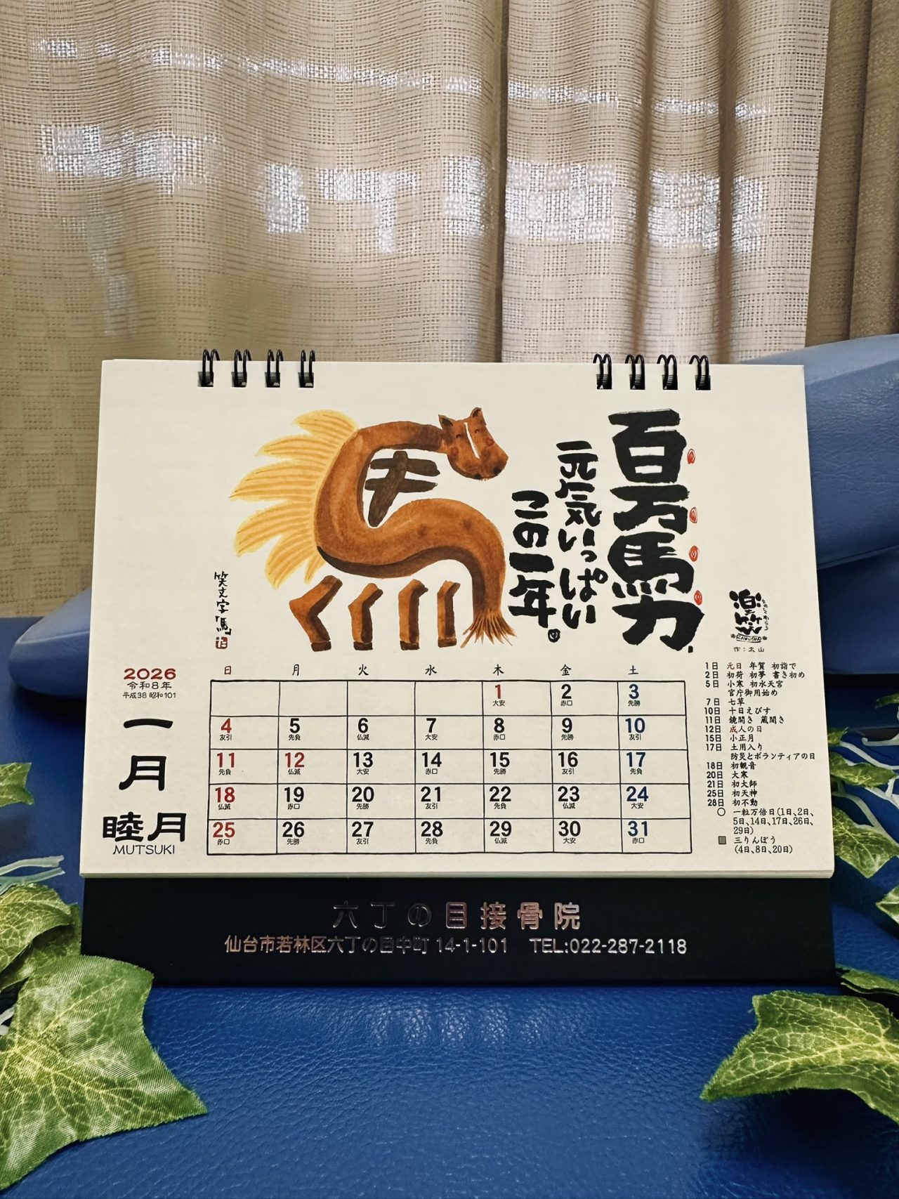 今年も「2026年六丁の目接骨院 笑顔になれる卓上カレンダー」を配布開始しました